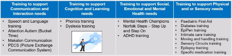 Provides all staff with training on the SEND needs in the academy and training relating to specific children.